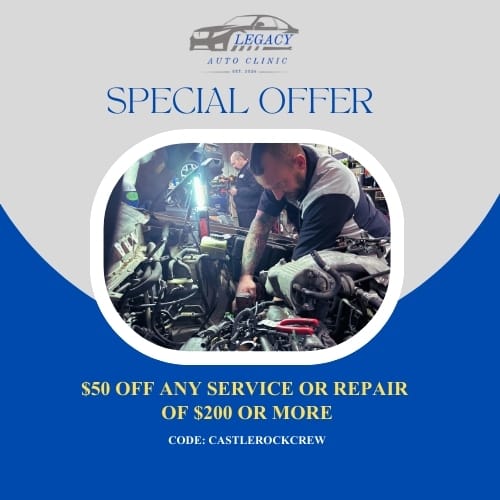 Take advantage of Legacy Auto Clinic’s grand opening offer of $50 off any service of $200 or more.